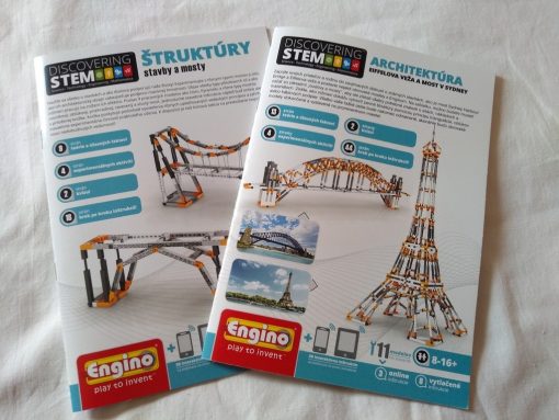 Knižka k tomuto setu je tvorená dvomi časťami teórie: prvá časť vám poskytne potrebné vedomosti o štruktúrach stavieb a mostov a druhá časť hovorí o histórii a dôležitosti týchto dvoch svetových stavieb. Obsahuje tiež experimentálne aktivity a kvíz z oblasti Štruktúry: stavby a mosty. Knižka je v slovenskom jazyku a obsahuje spolu: