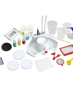 Súčasťou súpravy sú ochranné okuliare, pipety, pinzety, kadičky, Petriho misky a chemické látky.
