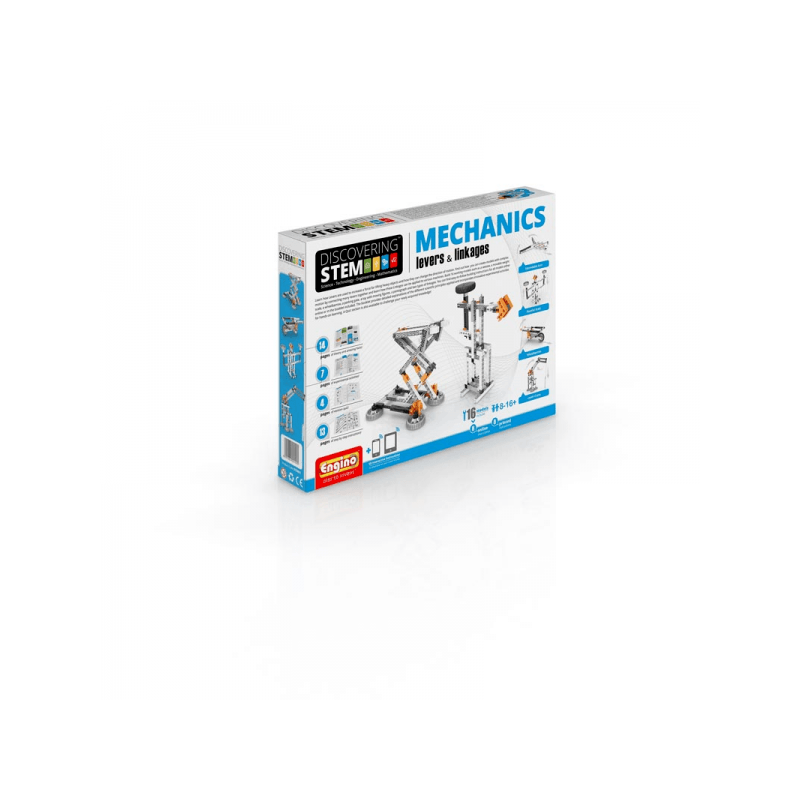 Získaj set MECHANIKA: Páky a Zapojenia a nauč sa ako páky môžu byť využité na zvyšovanie použitej sily alebo na menenie smeru pohybu. Zisti ako môžeš vytvoriť modely s komplexným pohybom spojením viacerých pák spolu a nauč sa ako tieto zapojenia môžu byť aplikované na rôzne stroje. Postav 16 pracovných modelov ako sú rovnoramenná Hojdačka, nerovnoramenná páková Váha, Fúrik, Parkovacia brána, Hračka s pohyblivými figúrkami, Pantograf a 2 typy zapojení.