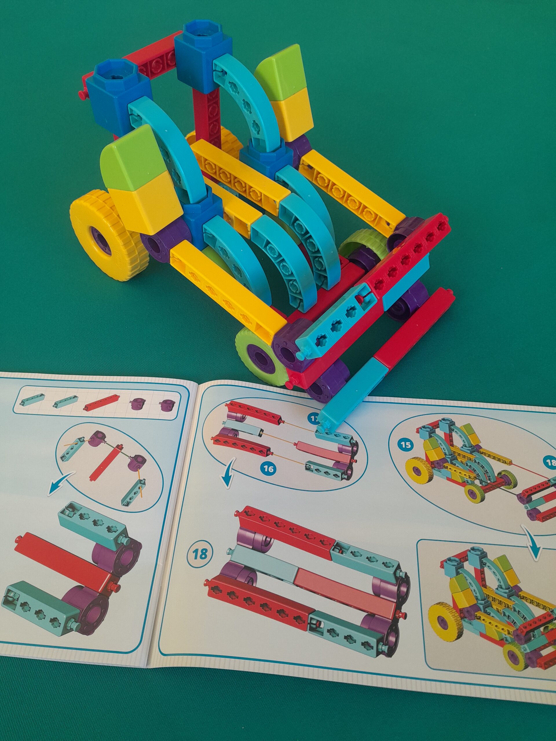 Súčasťou stavebnice je knižka s “krok po kroku” inštrukciami na zostavenie 2 modelov. Všetky modely sú k dispozícii ako interaktívne 3D inštrukcie zobraziteľné buď na PC, alebo smartfóne či tablete prostredníctvom aplikácie Engino kidCAD (3D Viewer), ktorú si môžete stiahnuť zadarmo v operačnom systéme Android, Apple(iOs) a Windows. Aplikácia vám umožní rozložiť alebo zložiť model, zmenšiť alebo zväčšiť a otáčať v 3D.