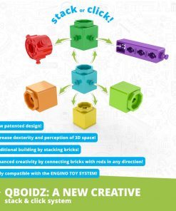 Nový systém Qboidz™ kombinuje oceňované spájanie „zacvaknutím“ systému Engino® s jednoduchým prvkom spájajúcich kociek! Systém podporuje deti predškolského veku rozvíjať svoje kognitívne, sociálne a motorické zručnosti prostredníctvom zábavnej a tvorivej hry. Vývoj Qboidz je založený na najnovších pedagogických princípoch STEM vzdelávania s cieľom poskytnúť dievčatám aj chlapcom potrebné skúsenosti, zručnosti a vedomosti, aby sa dokázali vyrovnať s technologickými pokrokmi budúcnosti.