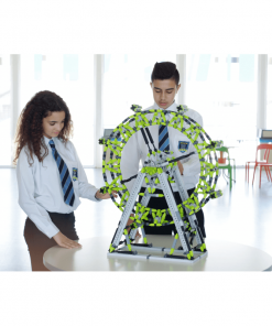 Hlavnou atrakciou zábavných parkov sú často vzrušujúce rýchle jazdy alebo romantické, pomalé kolesá, ktoré ponúkajú nádherný výhľad zhora. Stavebnica STEM Zábavný park ťa naučí všetko o týchto úžasných miestach, kde deti aj dospelí trávia nekonečné hodiny zábavy po celom svete! Tento set obsahuje jeden prevodovkový motor, ktorý poháňa 4 veľké modely zábavných jázd: Ruské koleso, Londýnske oko, Kolotoč a teleskopický stĺp Booster ride. Navyše, môžeš experimentovať s ozubenými prevodmi postavením 4 menších modelov ako sú Prevodovka, Experimentálny žeriav, Kolotoč a Planetárium. Set je dodávaný v kartónovom kufríku pre jednoduché skladovanie. Napájanie motorčeka: 2xAAA batérie (nie sú súčasťou).